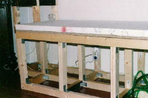 Unterbau besteht aus Leisten 75 x 45 mm und ist mit Winkeln verschraubt.